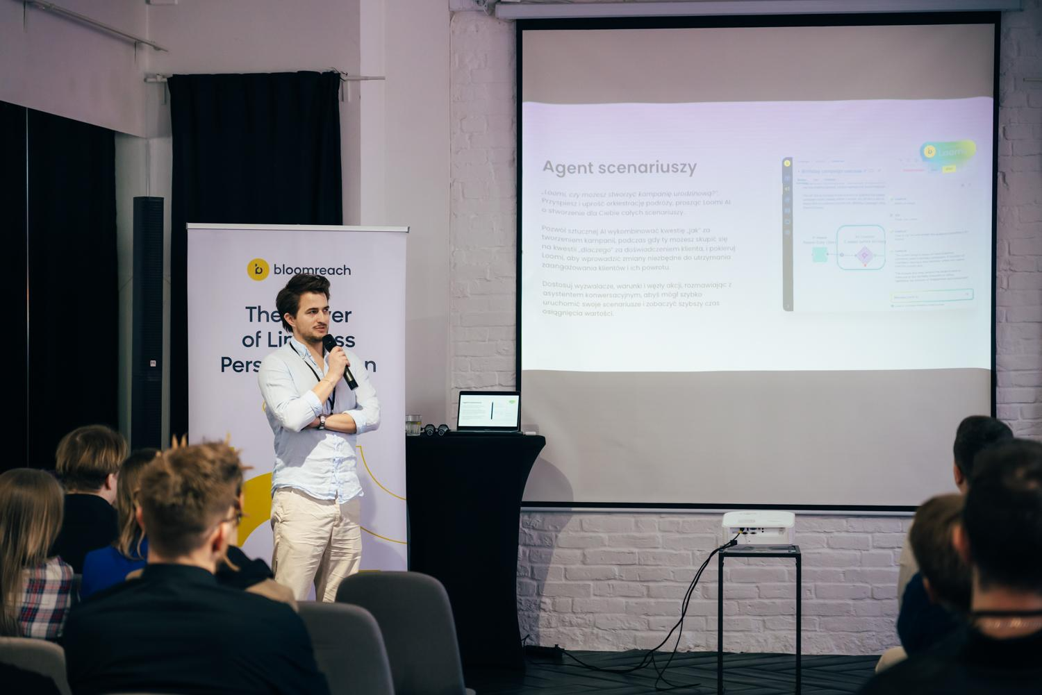 Dawid Kiszczak (Bloomreach) took the stage to discuss how AI is transforming Marketing Automation. He showcased Bloomreach’s investments in AI, highlighting how businesses can leverage these advancements to create personalised, data-driven customer experiences. Wojciech Mroczek from Bloomreach further explored the new and upcoming AI-powered features, emphasising their role in automating and optimising customer interactions.