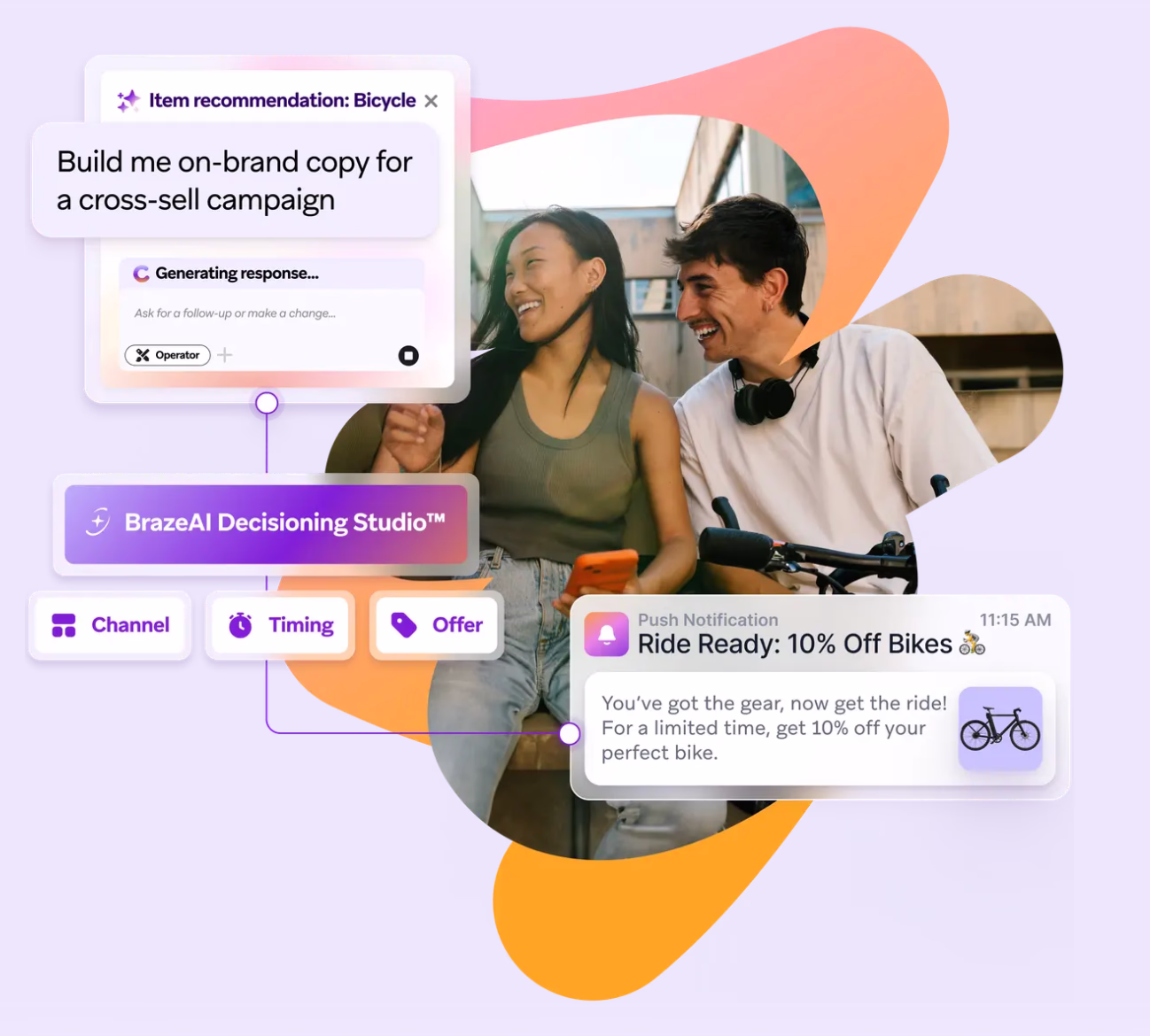 Respond instantly to customer behavior with relevant, contextual messaging powered by BrazeAI™ and real-time data flows.
